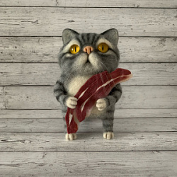 Сувенир "Кот с беконом" серый