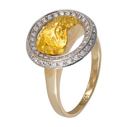 Кольцо с самородком и фианитами